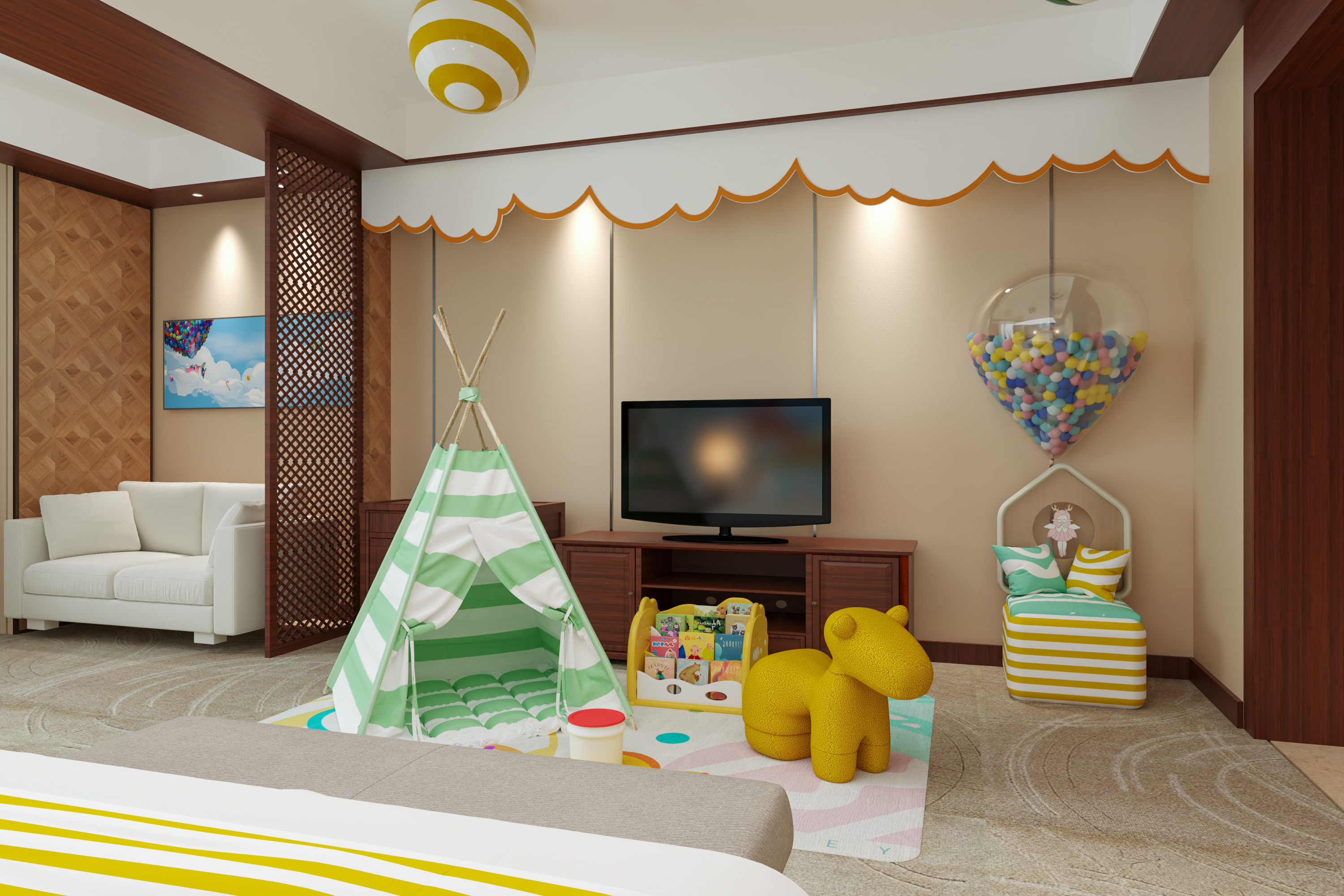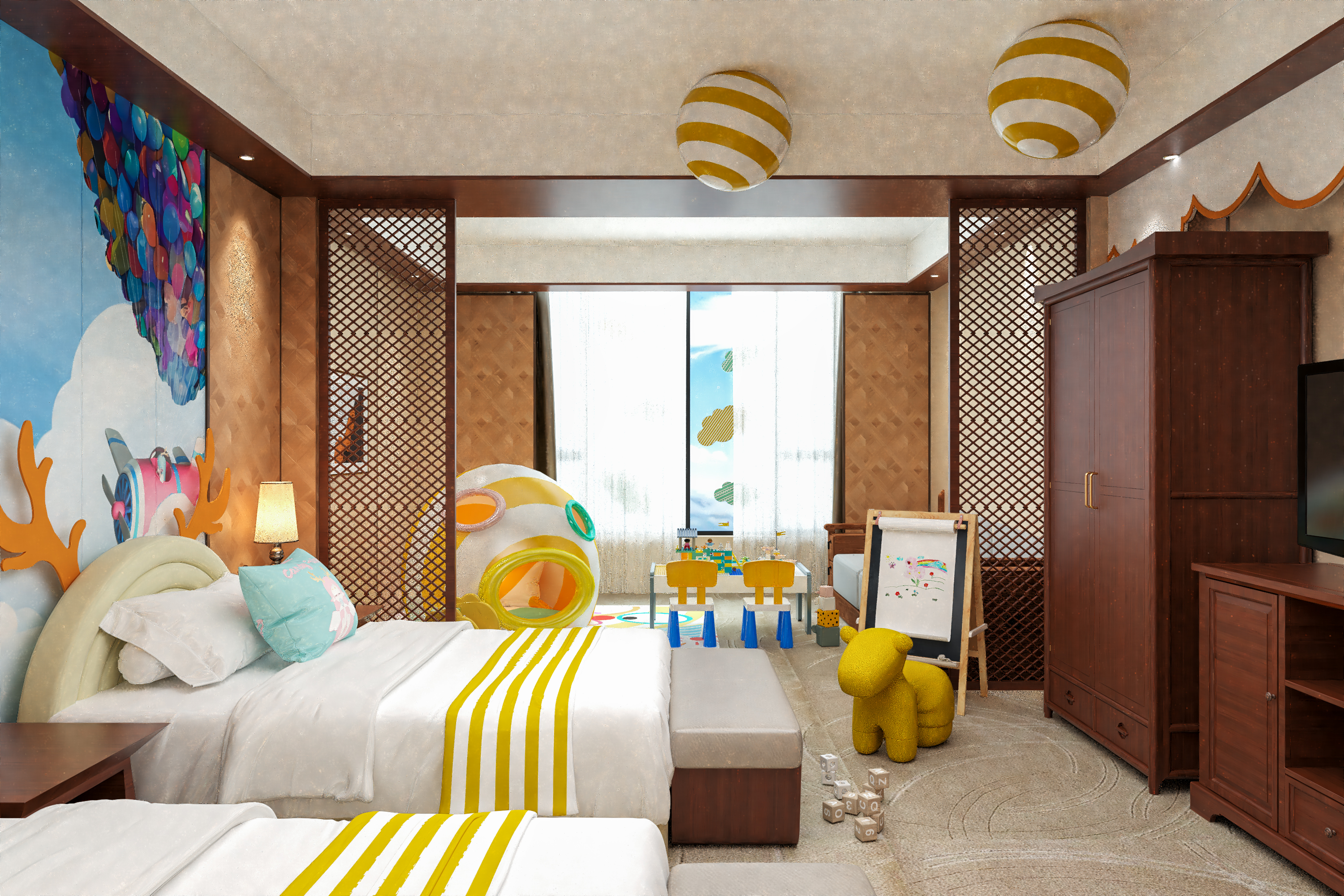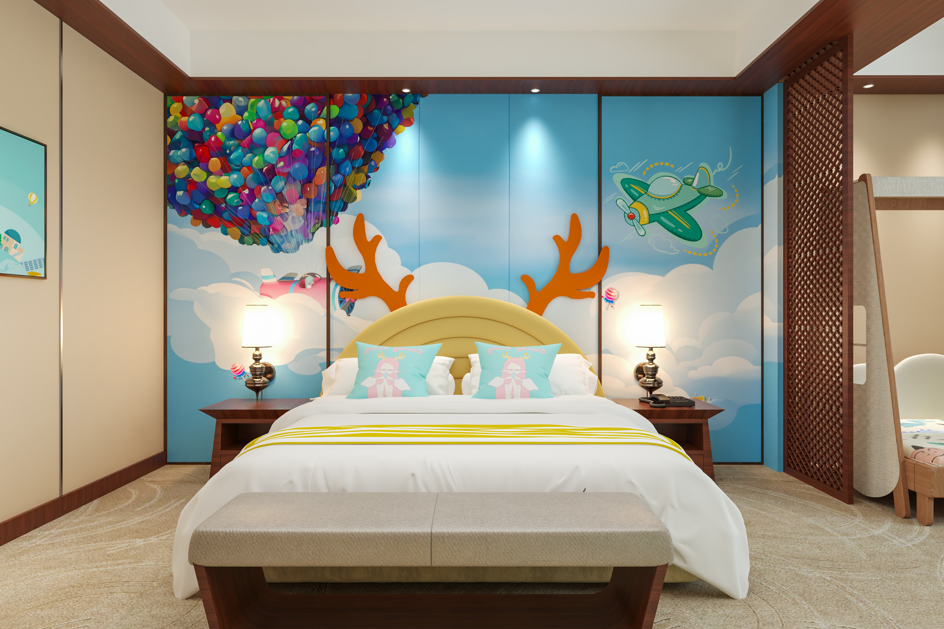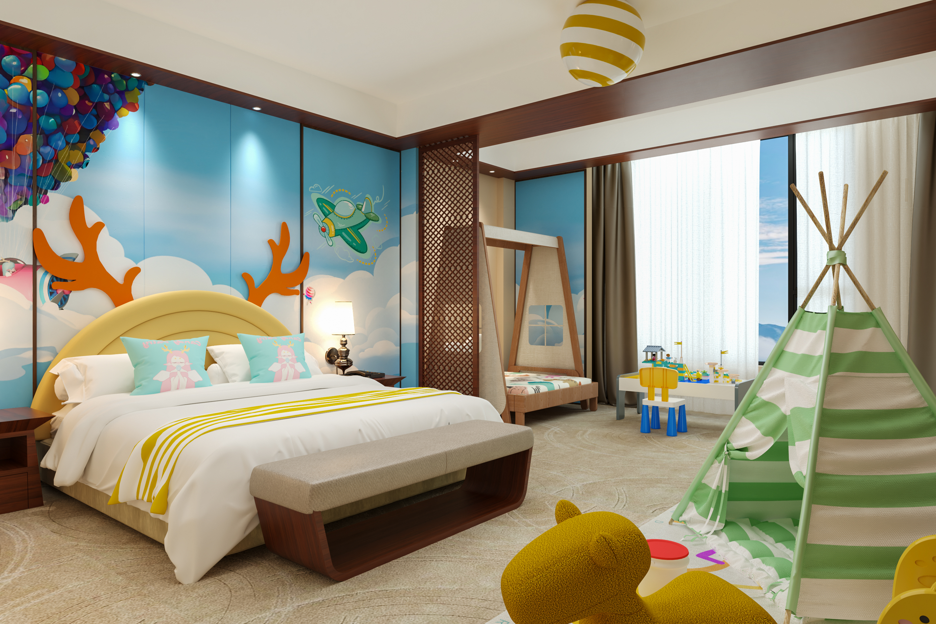 糖果飞屋亲子主题大床房(抽拉小木床丨萌娃帐篷)